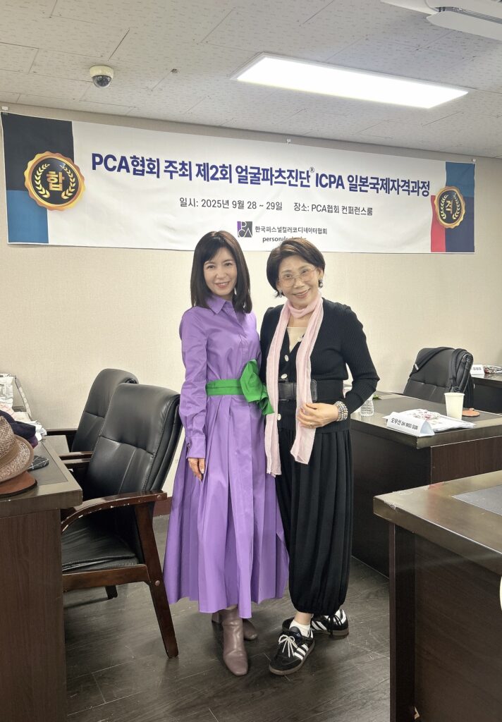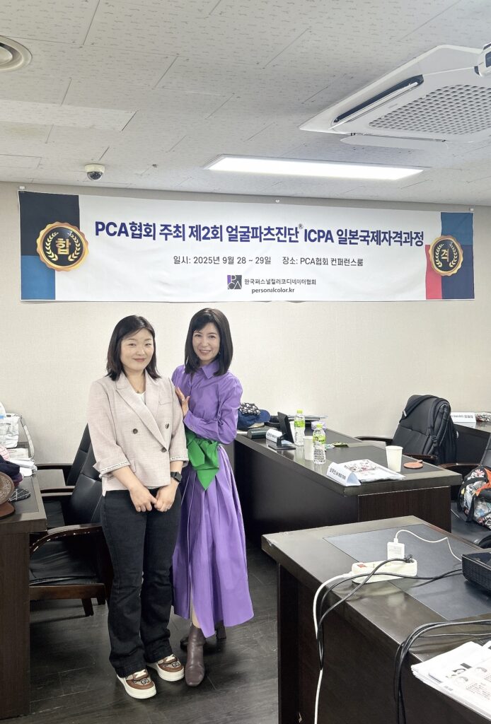 韓国府政府許可NPO法人韓国カラーコーディネーター協会からご依頼をいただきプロ養成をスタートしたのはコロナ前の2019年から(その様子はこちら)、その後コロナ渦では定期的にzoomにてリアルオンライン授業を計12回開催してきました(その様子はこちら)、コロナがあけて、リアル講座を再開(その様子はこちら)、昨年は大邱の美容専門学校でも授業をおこない(その様子はこちら)、また宝山大学からは一般社団法人国際カラープロフェッショナル協会に訪問されICPAスペクトルカラー診断®士の資格取得(その様子はこちら)、今年に入って1月に行く予定でしたが韓国の情勢不安で延期、4月に一旦リアルオンラインで開催、そして7月には顔型パーツ診断®士資格検定講座(レディース&メンズ)を開催(その様子はこちら)そして今回は4泊5日で顔型パーツ診断®士資格検定講座(レディース&メンズ)第二弾を開催してきましたので、その様子をお伝えしたいと思います。