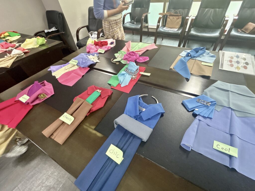 ファッションテイスト9タイプ別、アクセサリー・帽子・スカーフアレンジに加えて、パーソナルカラー4シーズン×ファッションテイスト9タイプ、計36種類のコーディネイト法まで盛沢山の深い内容ゆえに、質問も活発で、まさに充実した時間となりました。