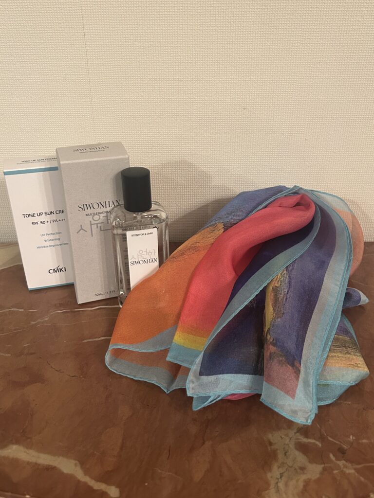 ・なんと私をイメージしてデザイナーに製作依頼されたスカーフや香水までもプレゼントしていただきました。