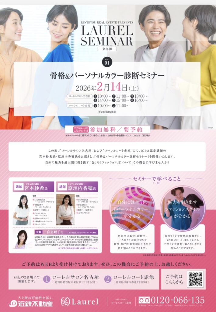 【2月14日開催】近鉄不動産㈱にてパーソナルカラー&骨格診断セミナーのお知らせ